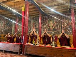 Presently, it is headed by Kyabje Togden Rinpoche, the 33rd Drikung Choje of Ladakh. There are a number of sacred shrines situated inside the monastery complex. Also, there are a number ofexquisite wall paintings, dating from the royal period, adorning the monastery. Phyang’s oldest temple is the Gomkhang (Mahakala Temple). It was built and painted at the time of the founding of the monastery in the 16th century. The exquisite old murals show Mahakala and other protector deities.