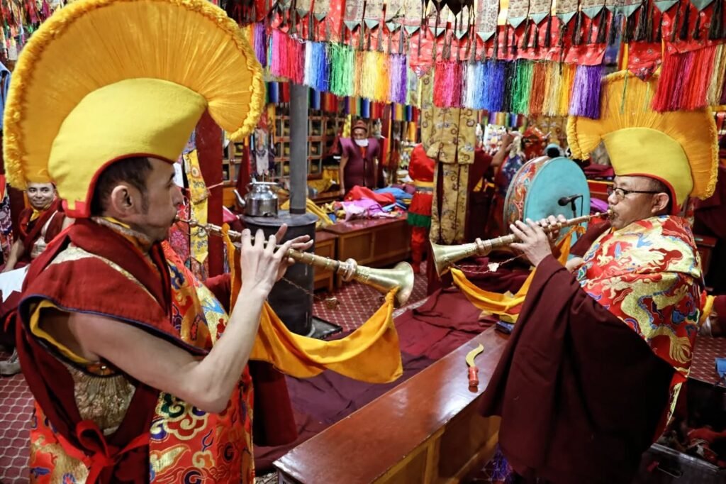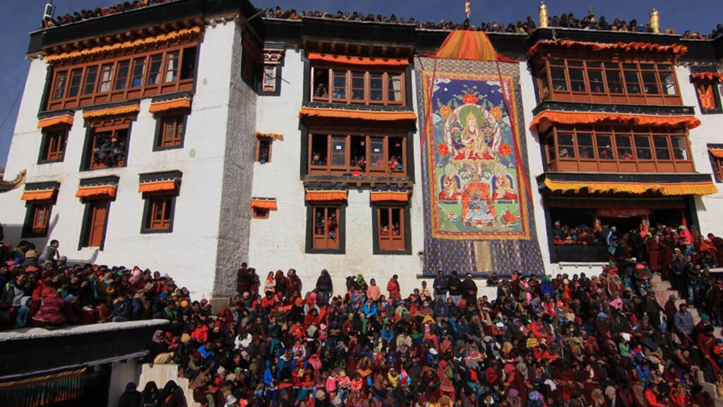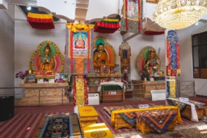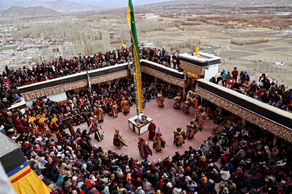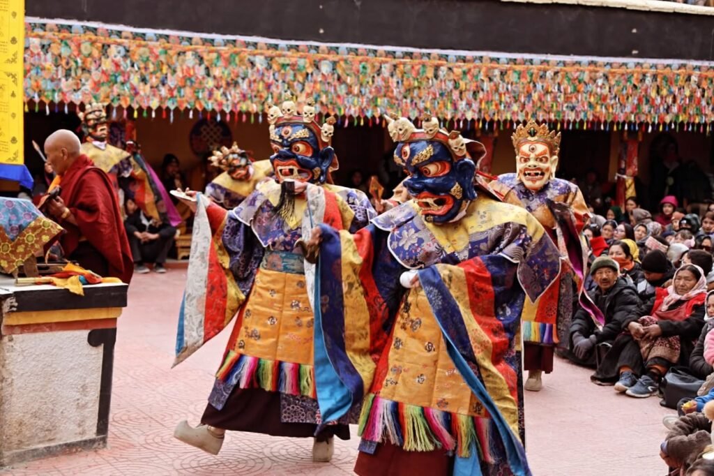 Gonkhang/LhamoKhang Temple: Located at the top, this temple features a grand idol of Goddess Palden Lhamo and other Deities, famous for revealing its face only during the annual festival. Spituk Gustor Festival: Held in January or February, this two-day festival showcases the sacred ‘Cham’ dance (masked dance) by monks.